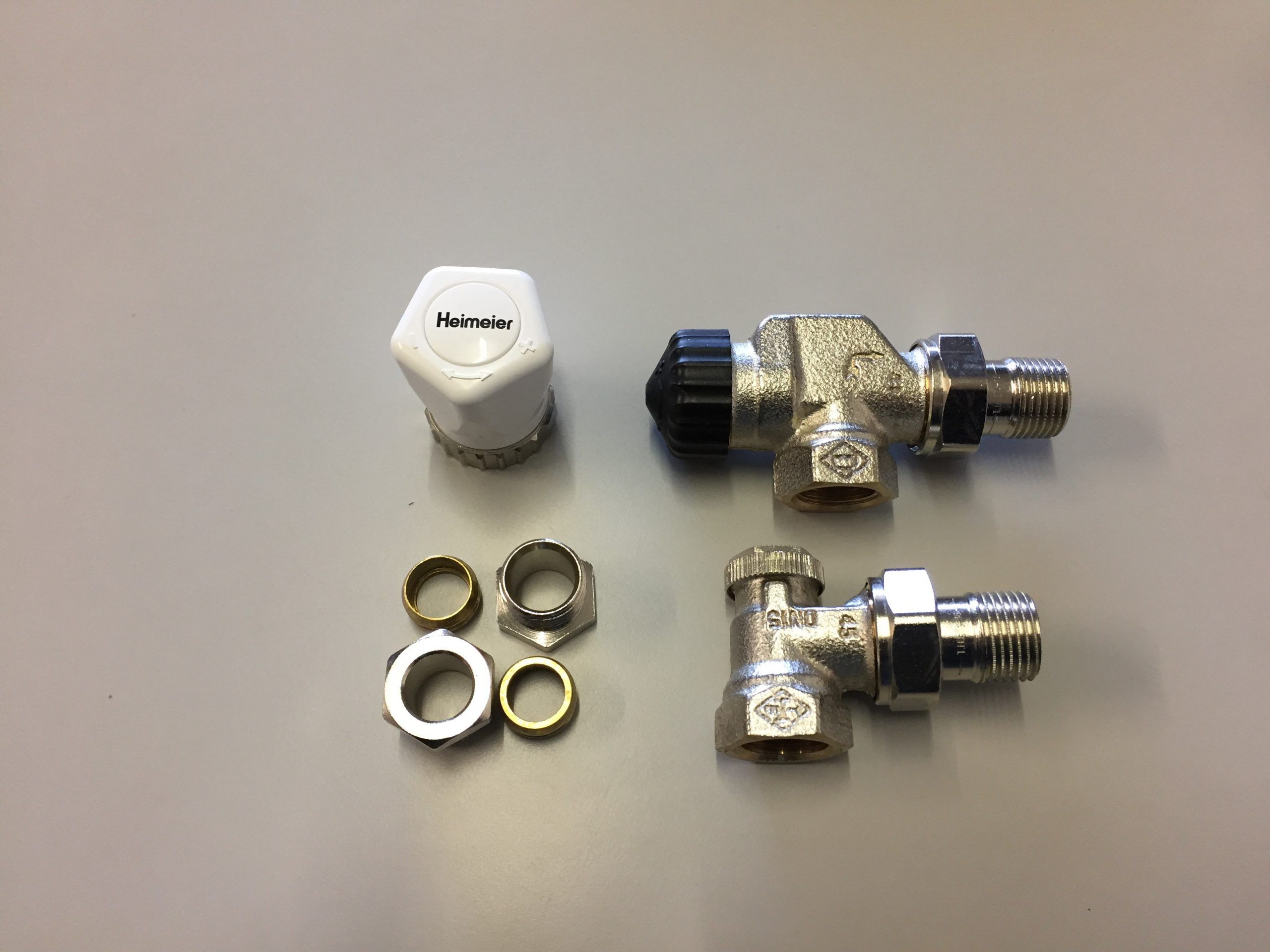 Aansluitset 49 (Haaks verkeerde CV kraan, haaks voetventiel, handwiel, + knelset 15mm aansluiting) t.b.v. Thermrad S4/S8, Compact S6, en alle radiatoren met ½” aansluiting.
