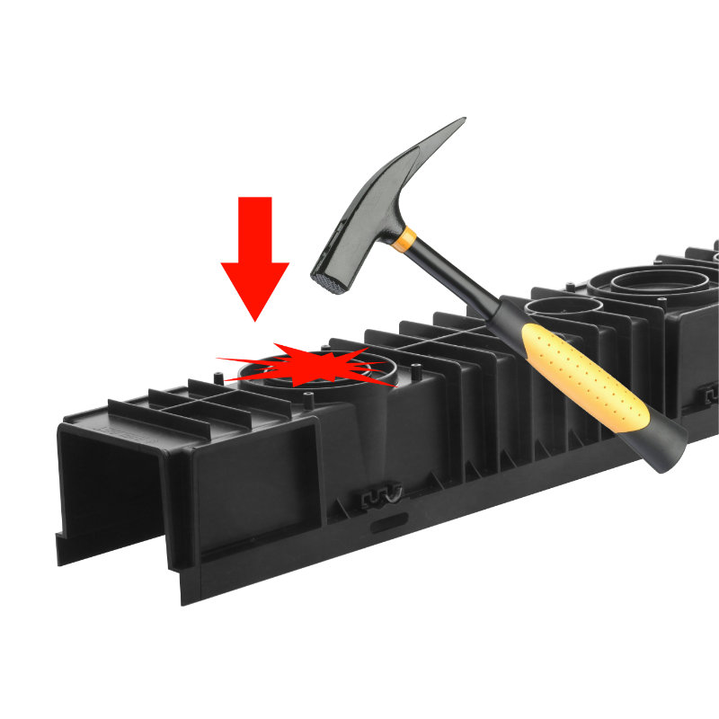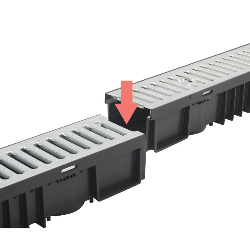De afvoergoten zijn door het schuifsysteem gemakkelijk te koppelen. De afvoergoten kunnen door dit schuifsysteem ook haaks gekoppeld worden, zonder extra appendages. De goot kan mede door het schuifsysteem NIET ingekort worden.