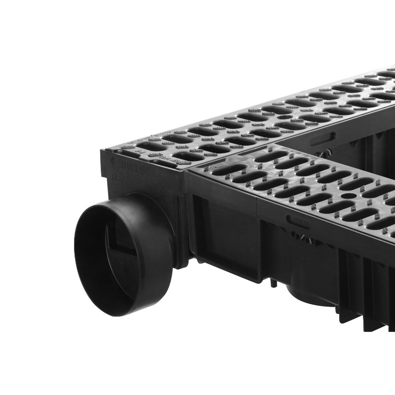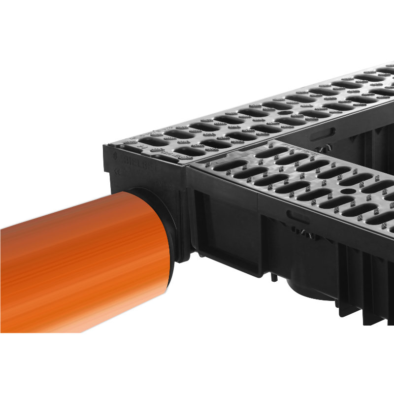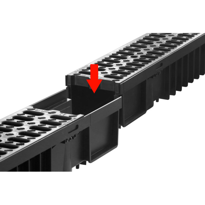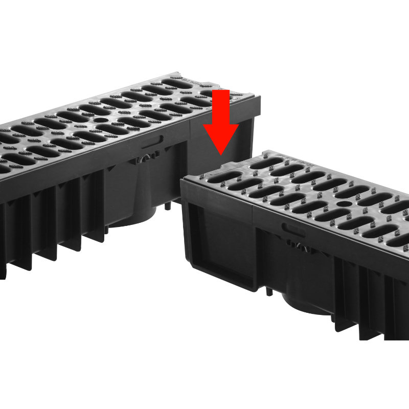 De afvoergoten zijn door het schuifsysteem gemakkelijk te koppelen. De afvoergoten kunnen door dit schuifsysteem ook haaks gekoppeld worden, zonder extra appendages. De goot kan mede door het schuifsysteem NIET ingekort worden.