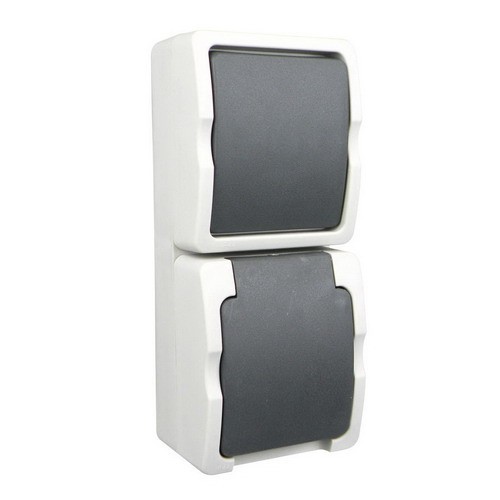 Opbouw combinatie wcd + wisselchakelaar, 1 wip/drukker, basiselement, steekklem, verticaal