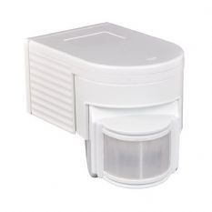 Beweginsmelder voor buitengebruik – Bereik 5 tot 12 meter – Hoek 180° – Tijd instelbaar 10 seconden tot 7 minuten – IP44 – 220-240V/AC – Max.1200W (220-240V/AC).