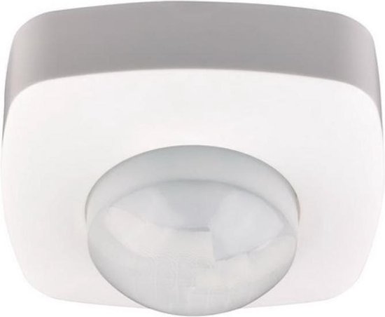 Bewegingsmelder voor binnengebruik. Tijd instelbaar 10 seconde tot 7 minuten – Bereik 20×20 meter – Hoek 360º – IP20 – 220-240V/AC.