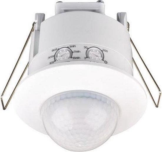 Bewegingsmelder voor binnengebruik. Tijd instelbaar 10 seconde tot 15 minuten – Bereik 12 meter – Hoek 360º – IP20 – 220-240V/AC.