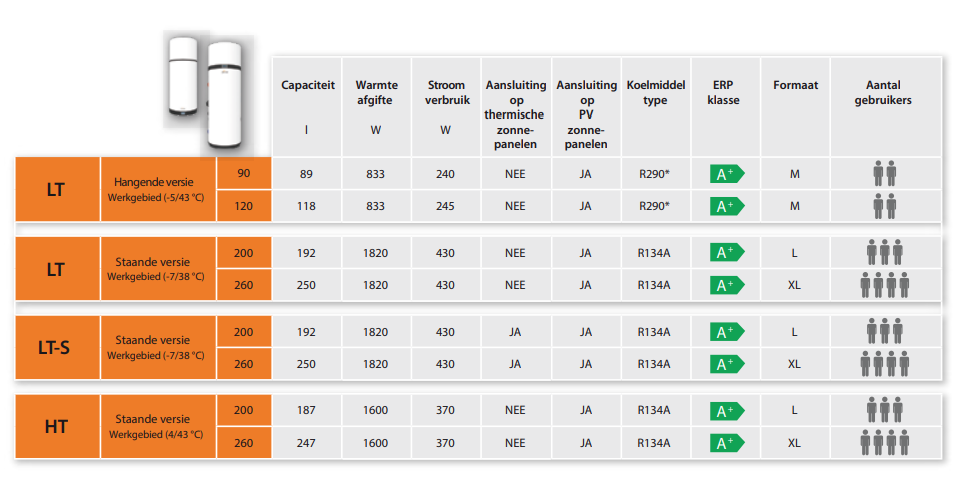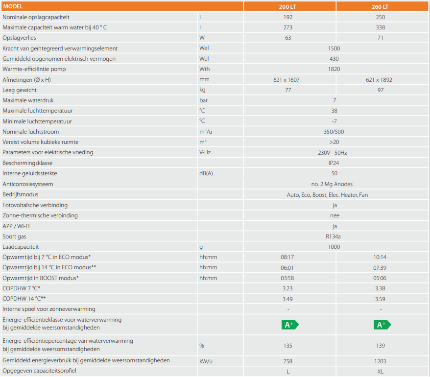 | Afmetingen warmtepompboiler | 621 x 1607mm (Ø x H) |