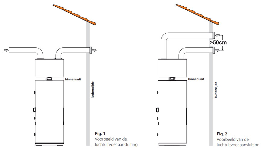 - Let op! (geïsoleerde) 160mm luchtafvoer naar buiten nodig