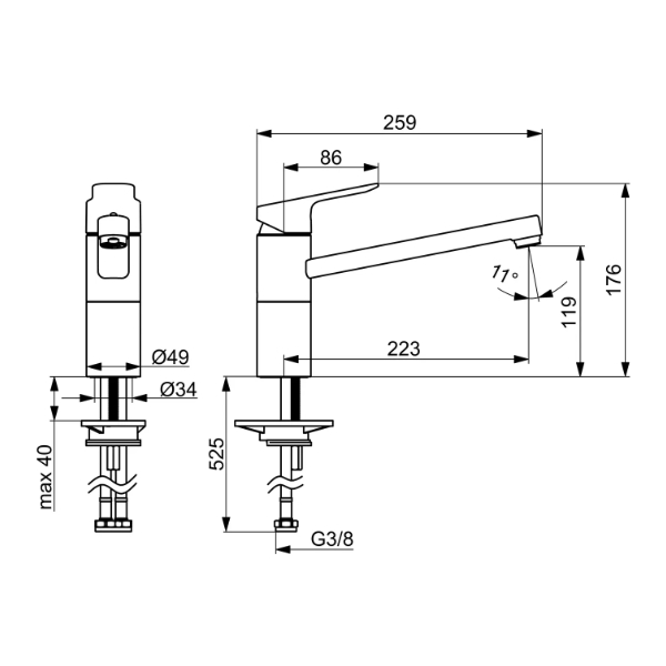- Mechanische onderdelen: ø 35 mm keramisch binnenwerk voor debiet en temperatuur instelling