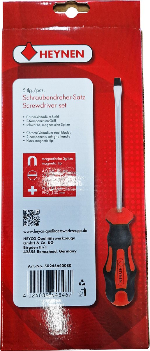 Beschrijving HEYNEN Schroevendraaier Set 5-Delig 5024564