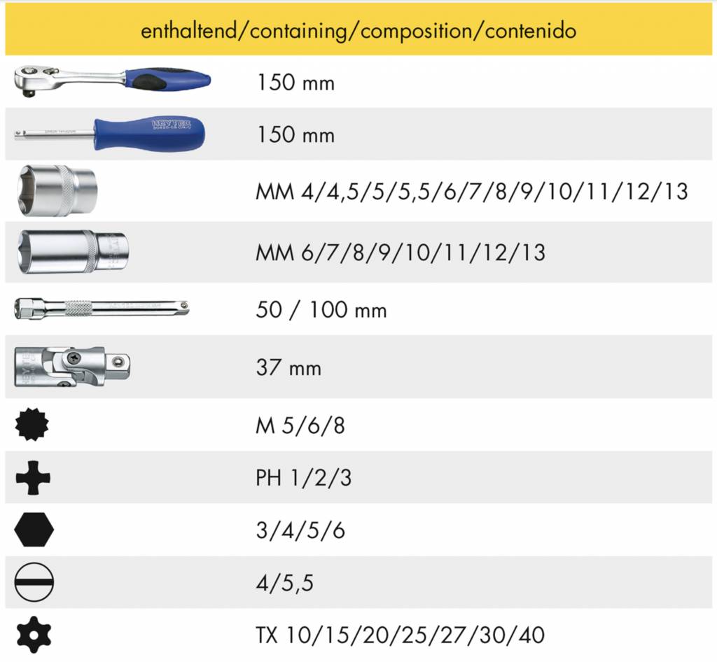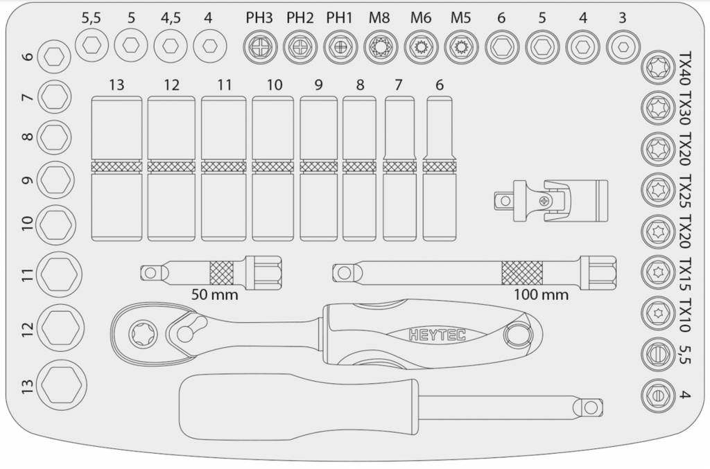 Beschrijving HEYTEC Dopsleutelset 1/4 – 44 Delig 50825-3015