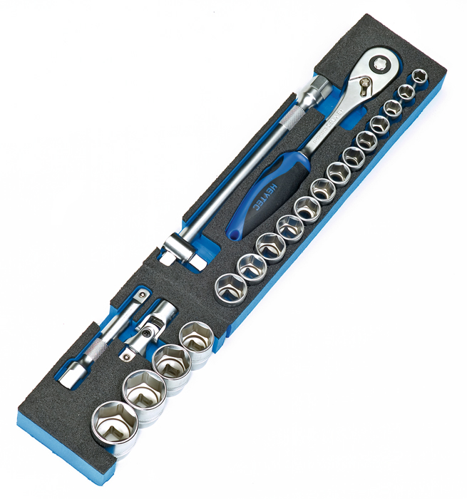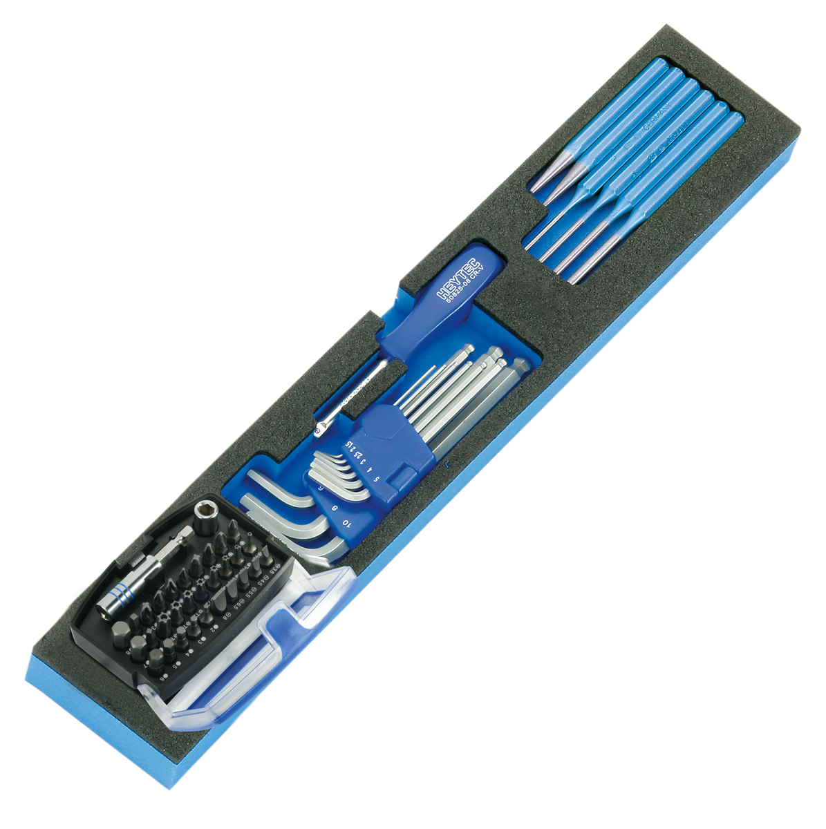 Heytec 96-delige universele montage – gereedschapkoffer opgebouwd uit 5 modules. Het is bestand tegen olie en vuil. Door de schuimstofindeling hoef je niet meer te zoeken naar je gereedschap om dat je alles op een vaste plaats kan opbergen.