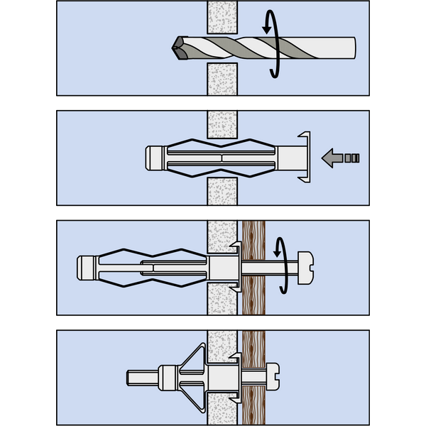 | – De vleugels onder de kop voorkomen dat de plug meedraait in het boorgat. |