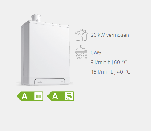 Deze cv-ketel mag dan wel een groot vermogen hebben, de ketel wordt er zeker niet minder energiezuinig op. De intergas cw5 beschikt namelijk over energielabel A. Hierdoor is de ketel erg laag in gasverbruik en beschikt hij over een 2-in-1 warmtewisselaar. Deze warmtewisselaar zorgt voor een optimale warmteoverdracht.