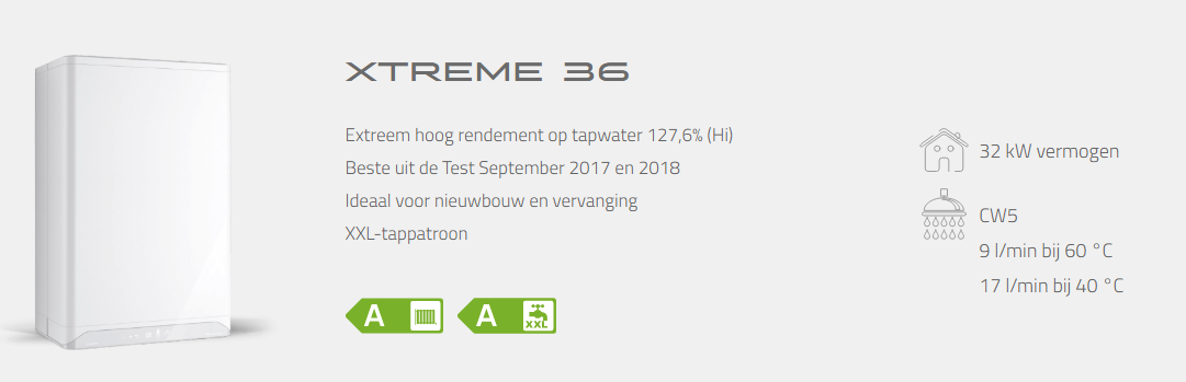 Met de warmtewisselaars van de Xtreme 36 wordt warmte teruggewonnen. Dit komt onder andere door het afkoelen van verbrandingsgassen. Daarnaast wordt de warmte die overblijft gebruikt om tapwater op te warmen.