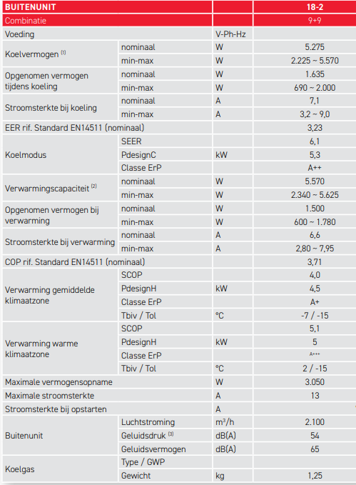 - Koelen 2x 2.8 kW A++