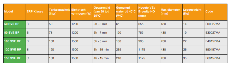 De Ferroli Titano Smart elektrische boiler is te verkrijgen in vijf verschillende varianten: 50, 80, 100, 120 en 150 liter.