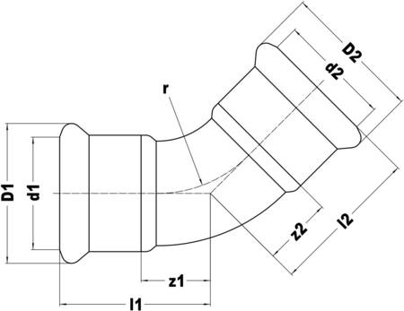VSH XPress RVS bocht koppeling, 45gr, 22 x 22mm, RVS (pers x pers)